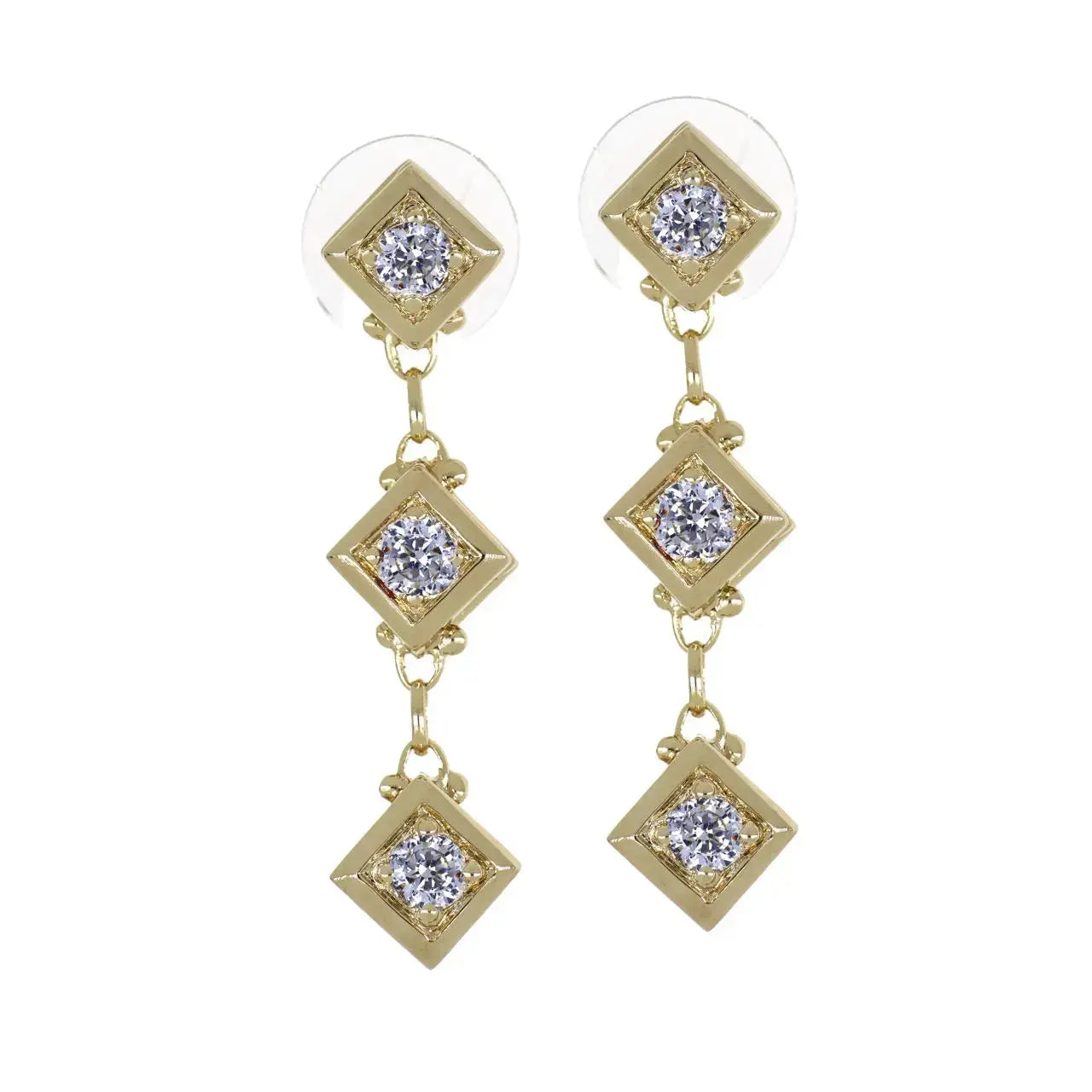 Gilded Collection Diamond Shape 3 Stone Drop Earrings
